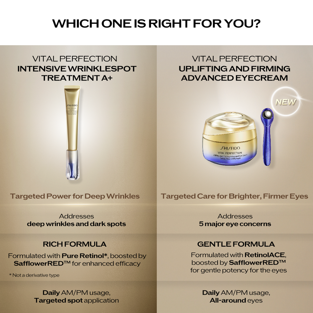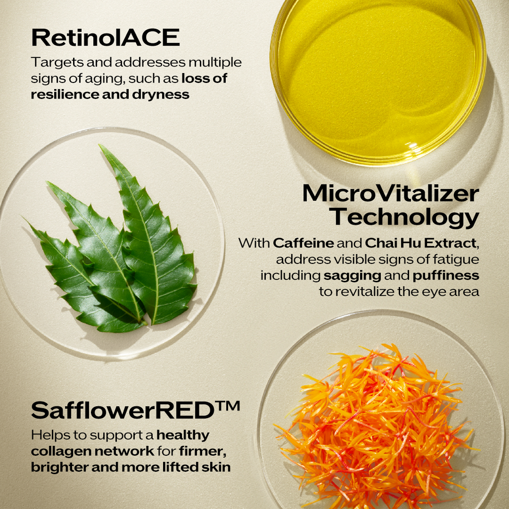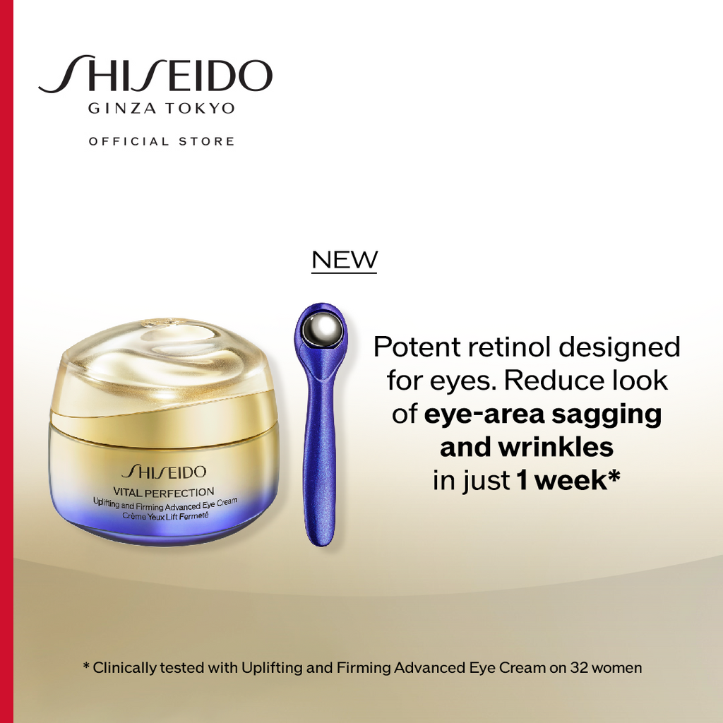 Delicate on the eye area, powerful in results—clinically proven in just one week.* SHISEIDO’s Potent Retinol and SafflowerRED™ work together to target eye concerns.