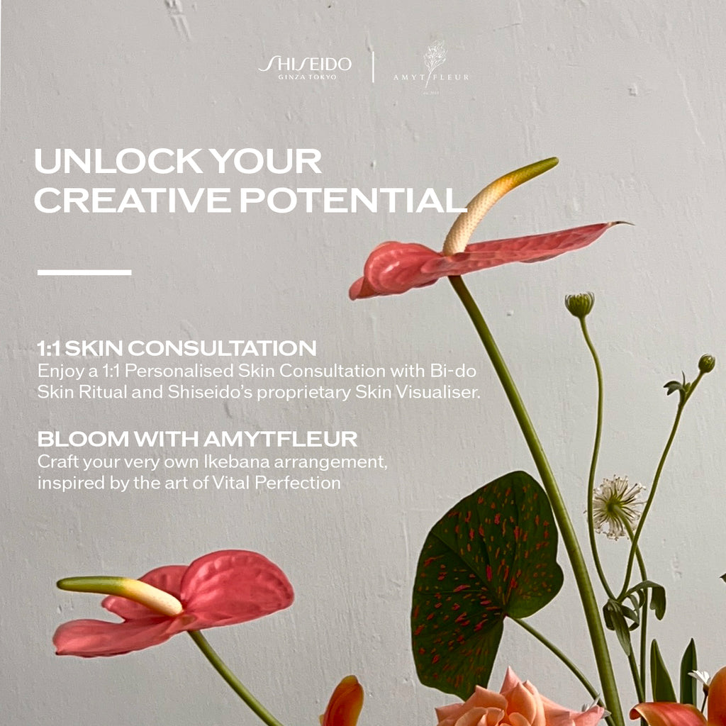 Following the Ikebana experience, enjoy a 1:1 Personalised Skin Consultation with Bi-do Skin Ritual and Shiseido’s proprietary Skin Visualiser.